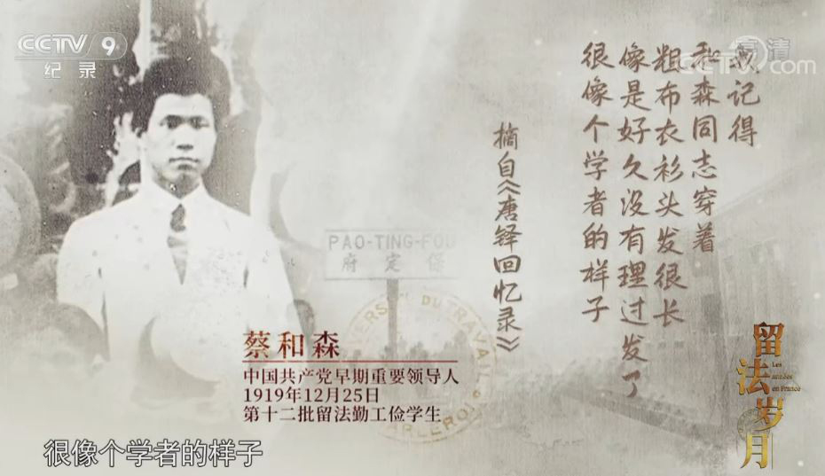 3月3日晚,四集纪录片《留法岁月》在央视纪录频道播出。该片为建党一百周年献礼纪录片,讲述了留法勤工俭学运动的源起、留法学生在异国他乡的奋斗历程、留法学生归国后的人生经历、留法勤工俭学运动对中国历史的影响等。