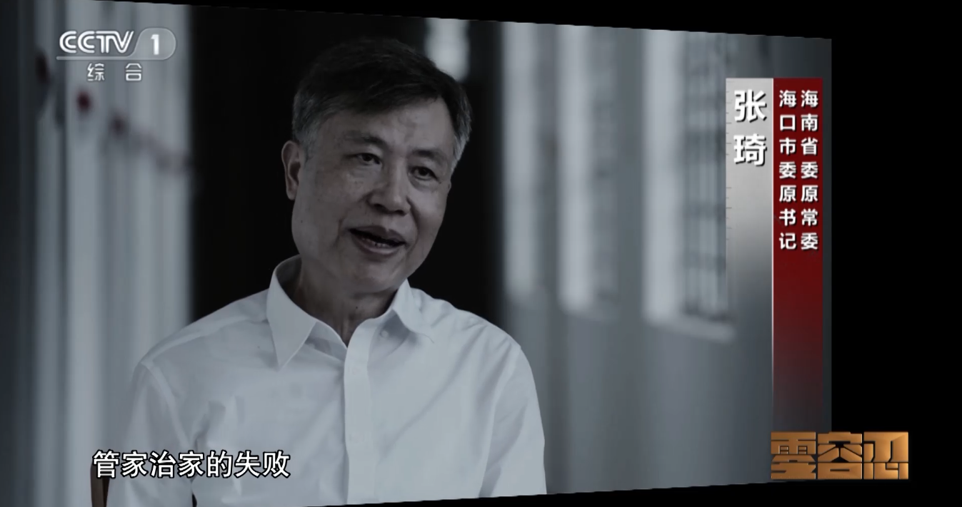 “我对家里管得也很少,特别是对我那孩子有愧疚心理,我就说要帮他一下,跟我一块出访的一个老板就主动提出来说给他10万加元,我当时还自欺欺人地跟儿子说,你将来还给他。”电视专题片《零容忍》第五集《永远在路上》中,海南省委原常委、海口市委原书记张琦回忆他在国外参加儿子大学毕业典礼时,让儿子张岩首次收受老板所送“生活费”的情形。